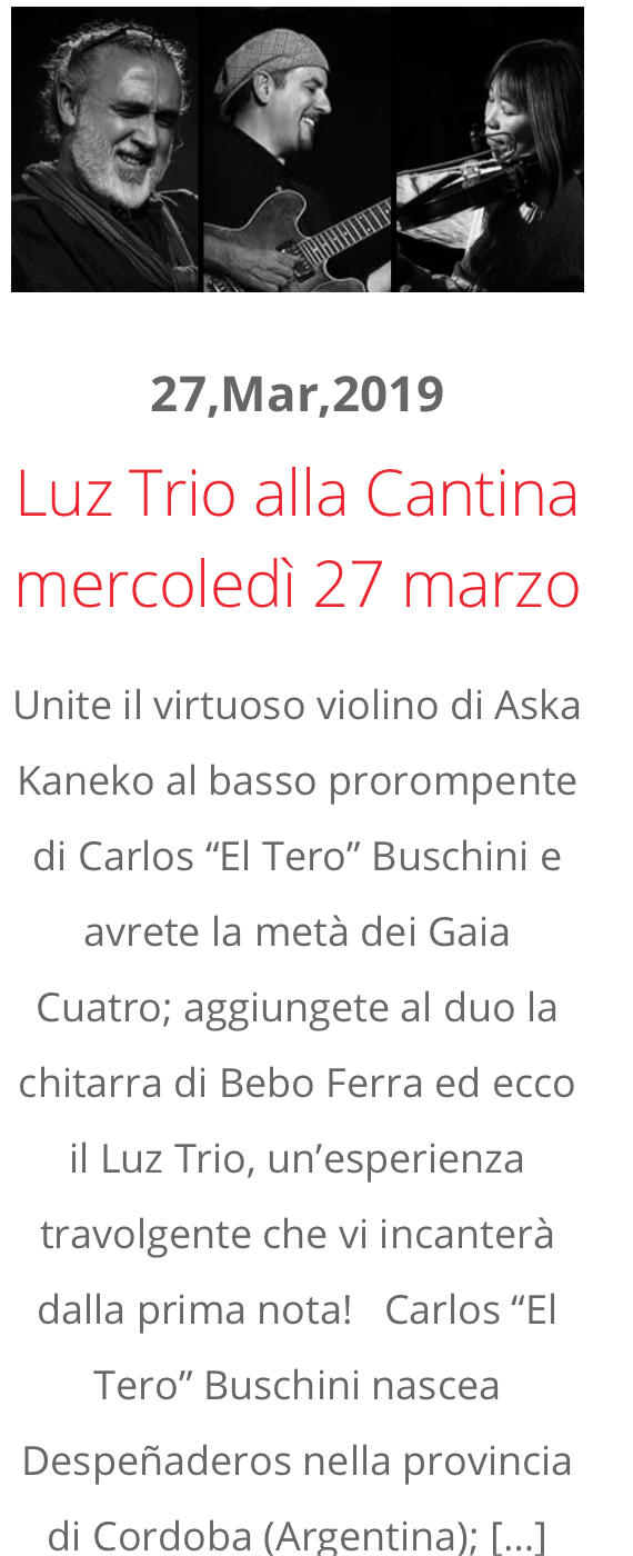Luz Trio (Wed) 21:30 at Cantina Garibaldi