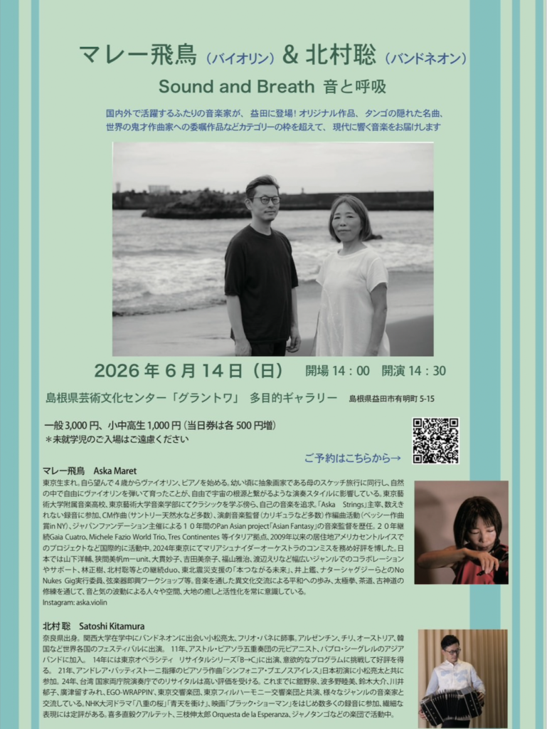 Aska Maret ( Violin) & Satoshi Kitamura ( Bandoneon) * English below